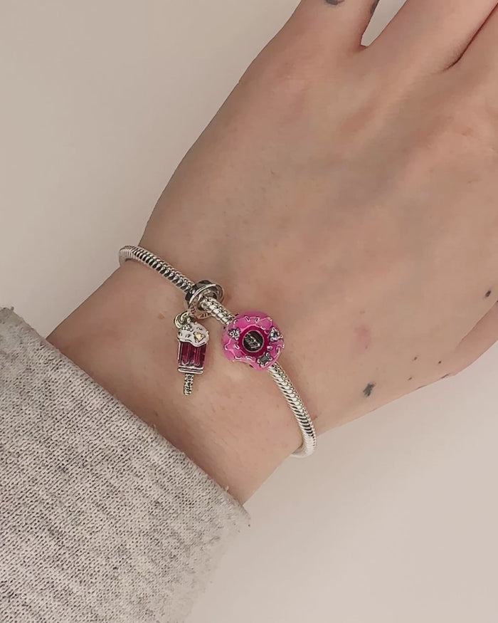 Disney Mickey & Minnie Mouse Kiss Red Murano Glass Dangle Charm