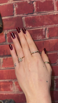 Opt for sleek versatility with the Double Band Ring. A 14k gold-plated double band features one polished band parallel to a second band set with sparkling pavé. The two bands appear separate but are actually connected, creating an eye-catching juxtaposition of different textures and materials. Dainty yet striking, this warm-toned double band ring will have a favorite place in any collection.