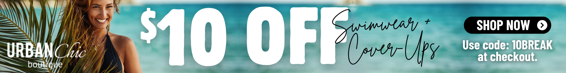 $10 OFF Swimwear & Cover-ups. Be Vacation Ready. Limited Time Only.